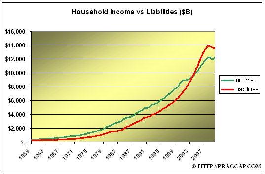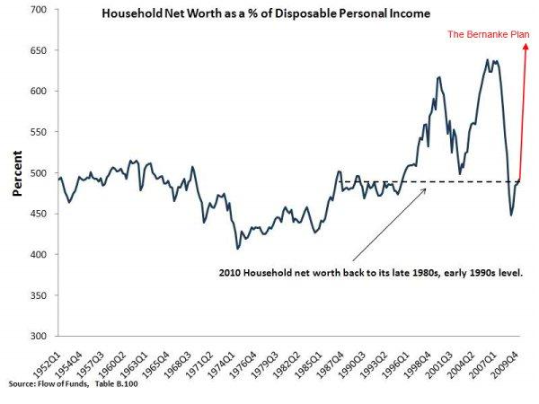 Därför vill Bernanke att denna ratio ska upp. Disponibel inkomsterna stiger, men gör inte så stor skillnad. Lånen amorteras varje månad, men inte så mycket. Alltså vill Bernanke ha upp priserna på hus till varje pris.