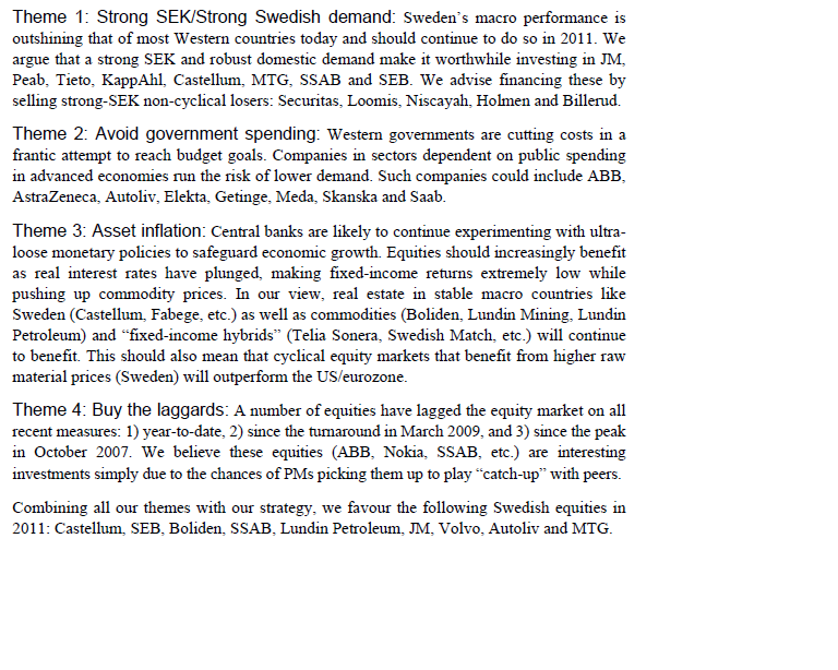 Men detta ska vi inte tänka på nu… Handelsbanken tycker man ska ha följande aktier nästa år: