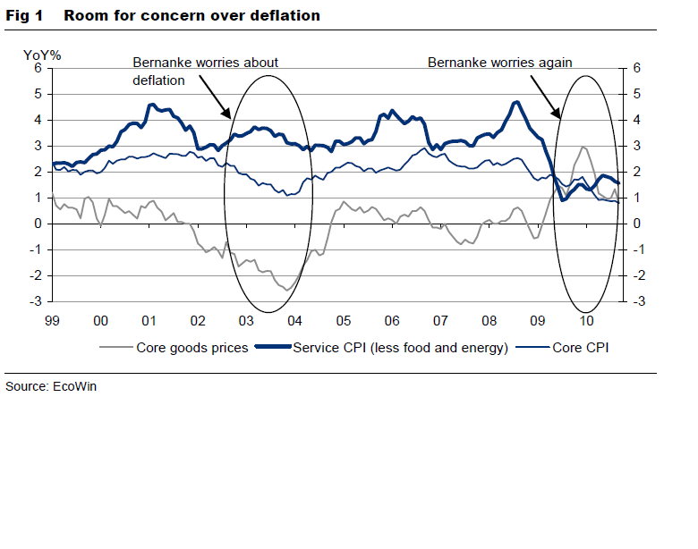 Jag kan förstå varför Bernanke är rädd för fallande priser, eller DEFLATION. Han kommer trycka pengar så länge som han ser minsta risk för deflation, sanna mina ord!
