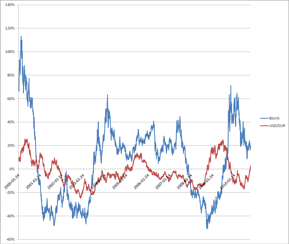 DET ÄR FAKTISKT BARA SEN FINANSKRISEN SLOG TILL SOM MAN KAN SE ETT SAMBAND MELLAN SVAG DOLLAR, STARK BÖRS