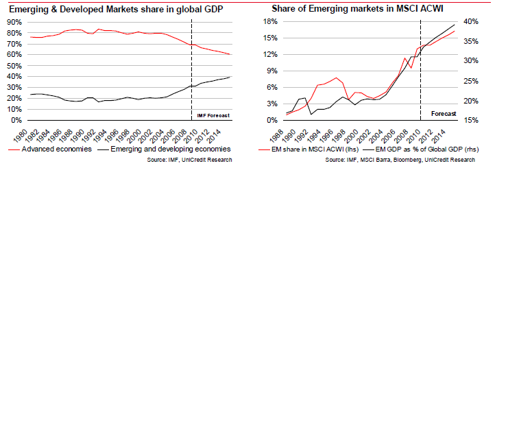 Tillväxtmarknader tar allt större del av kakan (världsekonomin) och i samma takt växer deras del i index.