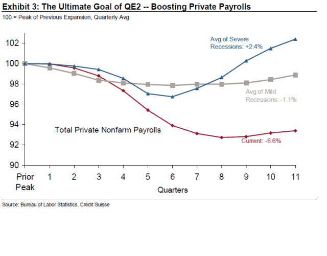 Vad QE2 INTE direkt kan påverka är konsumtion eller sysselsättning. Av den här anledningen tror många att QE2 inte fungerar. Sysselsättning och konsumtion KAN påverkas INDIREKT i förlängningen.