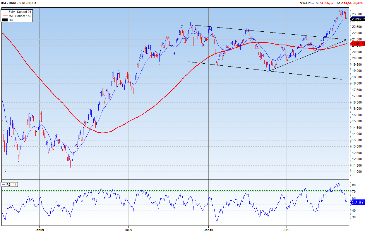 En liten brasklapp… Asien har varit ganska svagt de sista dagarna,,, och tidigare ganska så ledande. Antingen har vi bara sett en avstämning av gamla toppen (dvs tidigare motstånd=nuvarande stöd) eller kan vi lika gärna fortsätta ner till 21,500