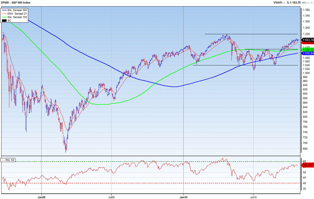 När man väl upnått 1220, kanske det vänder ner, kanske det sätter en högre topp för att marknaden vill flagga för att vi framtiden ser ljus ut tekniskt.