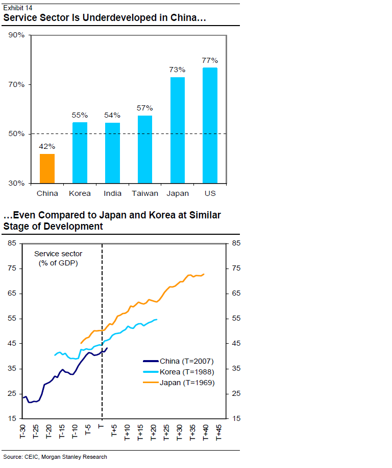Intressanta grafer och tabeller och ingen tvekan om Kinas enorma potential. Men som aktieinvesterare är frågetecknet som alltid hur stor del av det privata näringslivet i Kina som är publika, noterade, likvida, välskötta aktiebolag. Kan man inte lika gärna placera i globala bolag som på ett eller annat sätt drar nytta av Kinas tillväxt men som inte nödvändigtvis är Kinesiska? Sannolikt kommer Kinas enorma tillväxt gynna andra delar av ekonomin än noterade börsbolag. Vore intressant att se historiska jämförelser med t.ex. Japan och Korea kring i vilken cykel aktiemarknaden ger den högsta avkastningen. Svenska börsen hade ju t.ex. en bra utveckling under 1980 och 1990-talet utan att vår ekonomi då hade några liknelser med en typisk EM-ekonomi.