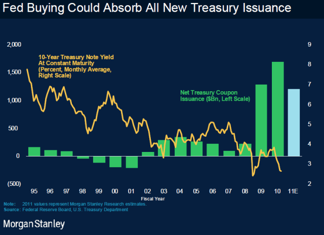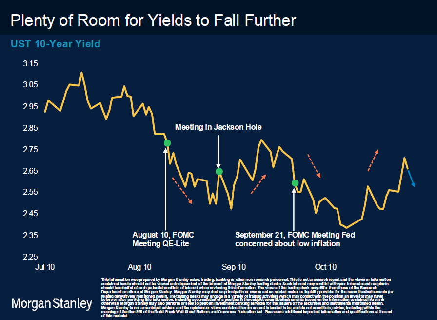 10-åringen har faktiskt inte rört sig så mycket ännu… enligt MS finns mycket mer att ta av! Detta beror ju på hur aggressivt FED kommer att köpa statspapper!
