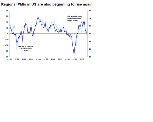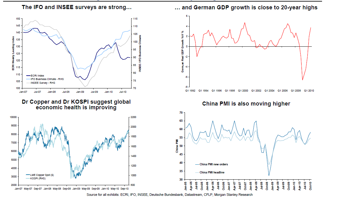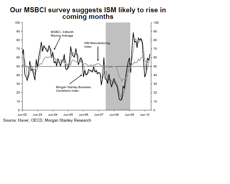 Enligt MS kommer inte ISM försämras i en mid cycle dip rörelse utan den sättning vi har haft i ISM från ca 60 i april 2010 till september månads 54,4… ja det var allt som var. Börsmässigt var flat utveckling det enda vi fick korrektionsmässigt… MEN framöver… ja då ska ISM fortsättat upp!!