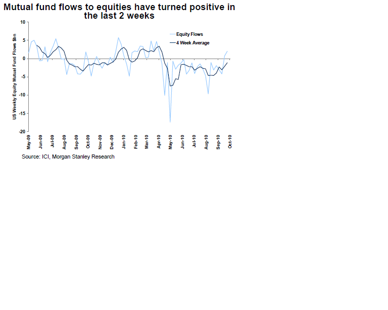 Jag håller med MS om att 1, flödesmässigt kan det bli gynnsamt för börsen framöver och 2, bond vs equity talar till AKTIERS fördel