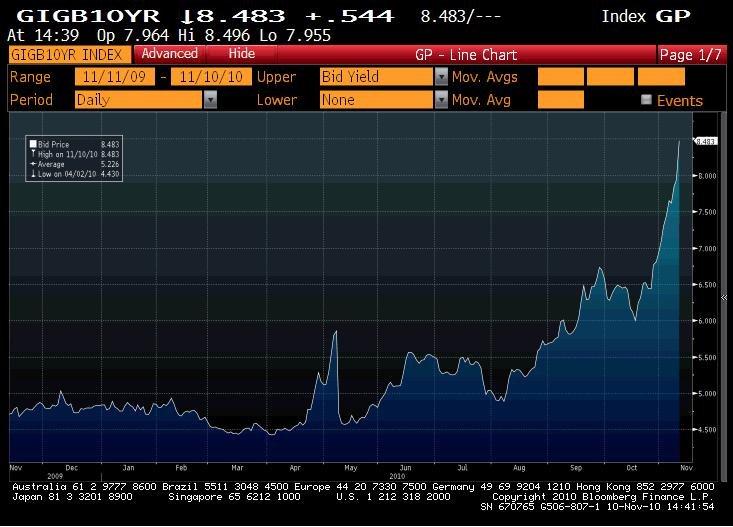 ovan visar yielden på 10yrs bonds. Den har gått upp kan man säga!