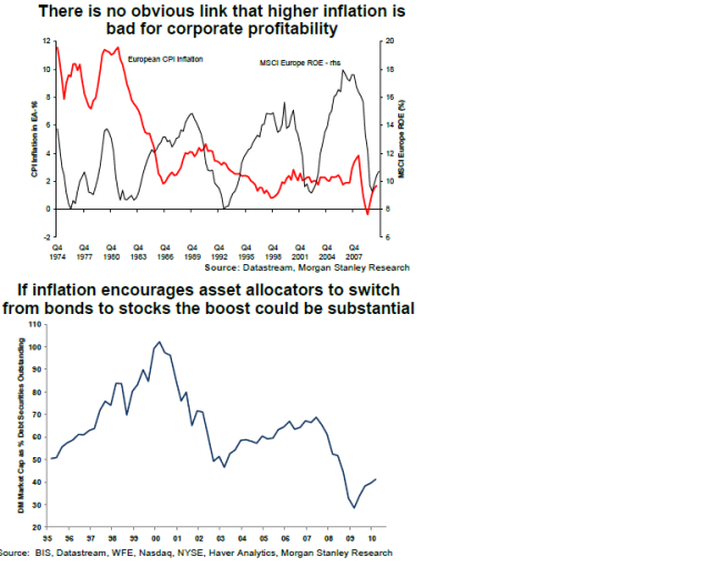 De här charten är bra. Många räds att priserna på importerade varor kommer pressa ner marginalerna då man inte kan höja priserna mot slutkund, då denne är för svag. Historiskt finns faktiskt inga belägg för att stigande importpriser medför lägre marginaler och lönsamhet. Nu visar nedan chart visserligen europa, men ändå!!!! Även om man tittar på ROE nivån bland Europeiska bolag är inte den oroande… den ska helst vara över 14% för att jag ska börja rygga tillbaks!