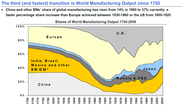 Att produktiviteten sjönk rel US är verkligen intressant. Jag har inget exakt svar. Det enda jag vet är att produktiviteten har ökat väldigt mycket senaste 2 åren i USA, vilket märkts på vinsterna. Förklaringen är inte så konstig, Amerikanska företag kickade en j-a massa folk, sen när lager uppbyggnadsfasen kom så återanställde man ingen utan lät de som var kvar jobba hårdare utan egentligen bli kompenserade fullt ut lönemässigt. Någon nyanställning blev det ju inte som vi vet. Going forward så hävdar Credit Suisse att företagen MÅSTE börja anställa igen då output i förhållande til labour force inte är hållbar. Frågan är vad som händer med efterfrågan? Stiger den lite, tror jag vi kan se ganska häftiga nyanställningar. Är den flat så är det frågan om de kan fortsätta köra med samma arbetsstyrka. Viker efterfrågan så lär vi se yterligare varsel…. men lägre om företagen hade varit ”överbefolkade”. Så det här med bättre produktivitet jmf Kina tror jag är en outlayer i sammanhanget. SEn är det frågan om Kina har tappat tempo i produktivitet, men det tror jag verkligen inte, då man pratar om jobbless growth när man se till Kinas tillväxt de senaste åren. En ekonomi som i genomsnitt hade vuxit med 10% om året hade sysselsatt en j-a massa fler människor, men inte Kina. DEtta handlar om att tillväxten till stor del kommer från investeringanr i infrastruktir, kapital och fast egendom. Detta lär förändras framöver.