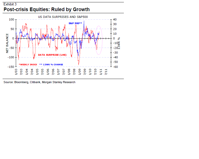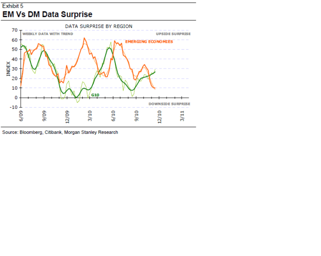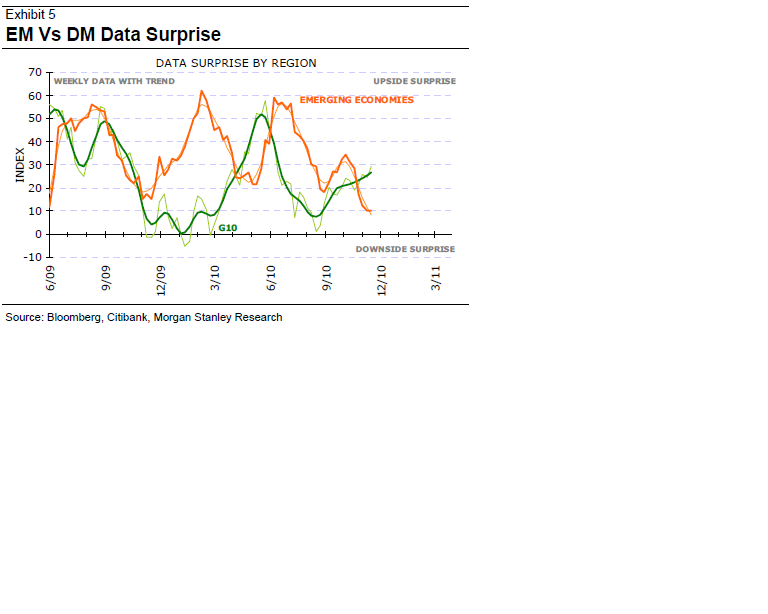 En annan faktor är inflation. I DM vill man ha inflation, inte deflation. I USA har råvarokomponenten i CPI stigit med 5,5% på årsbasis, vilket inneburit en ökning av headline CPI med 2,75%. Samtidigt är core inflation upp 0,5% på årsbasis. FED pratar bara om deflation tail risk. I EM pratar man mycket om råvaruinflation, och detta anses vara ett problem. Kina är bästa exemplet. Detta betyder att vi lär se fortsatta åtstramningar i EM relativt DM. Detta är negativt för EM. Det kommer förmodligen ta ganska lång tid innan räntorna får inverkan på DM aktier.