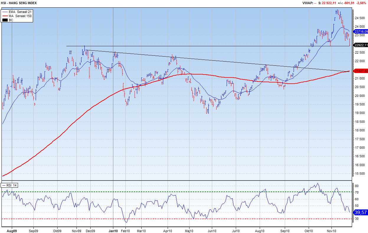 Asien var svagt i natt. Hang Seng är i ett kritiskt läge värt att hålla koll på!