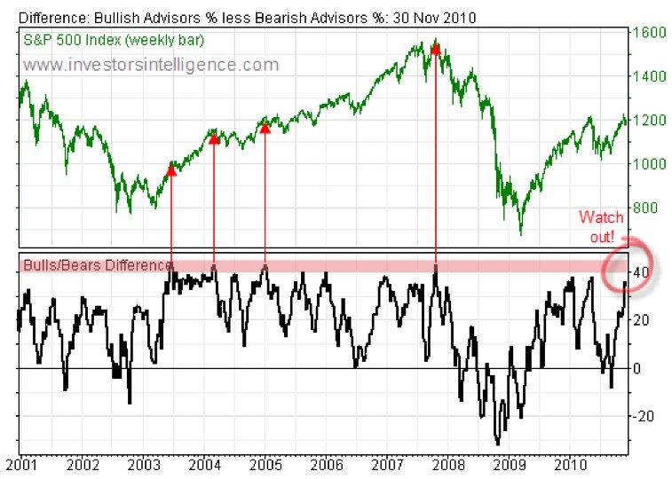 5) Advisory bullishness > 47%, with bearishness < 27% (Investor’s Intelligence)