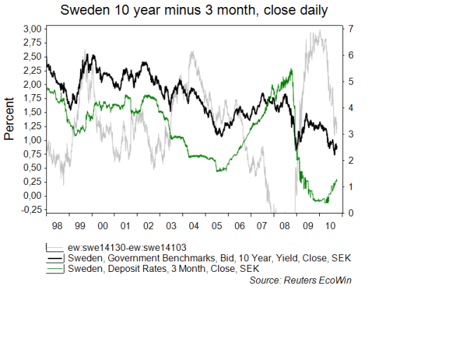 Till skillnad från den Amerikanska Yield kurvan visar den Svenska tydligt hur vi lämnade låg konjan bakom oss och tog fart mot bättre konjunktur… den här lär gå under NOLL nästa år vilket guidar för urtoppning på aktiemarknaden!!!