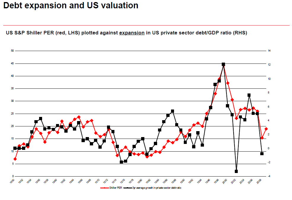Det är logiskt att hög skuldsättning är en konsekvens av hög utlåning. En högutlåning driver sales, som driver earnings, som driver vinsttillväxt…. och därmed trimmar upp optimism… och därmed PE-tal. Titta efter regioner/länder med låg belåning, och därmed möjlighet till ökad belåning.. inte tvärtom!!