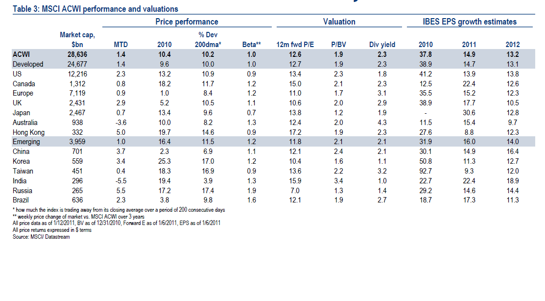 Nåja, US handlas till P/BV 2,3 (lågt ur ett historiskt perspektiv) med en ROE för 2011e på ca 15% (utifrån vår hobbyanalys ovan). Detta innebär en förenklad ERP (Equity risk premium) på 4,5%-5%. (om man använder ett snitt av US 2yrs and 10yrs som riskfri alternativavkastning)… detta är högt ur ett historiskt perspektiv.