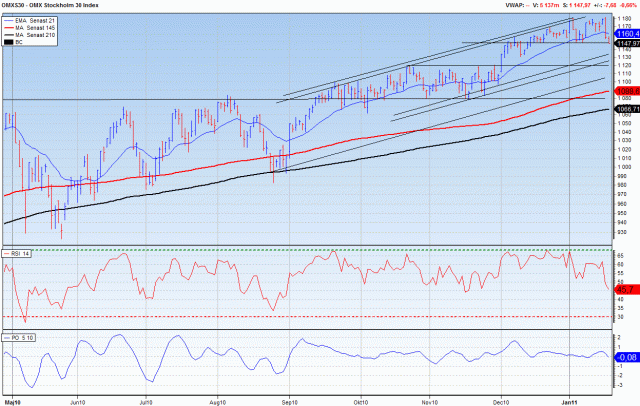 Är rekylen här? 1120 som första roadbump i OMX30 känns inte omöjligt… men mitt riktiga target ligger på ca 1080. Stopp-loss är toppen igår!