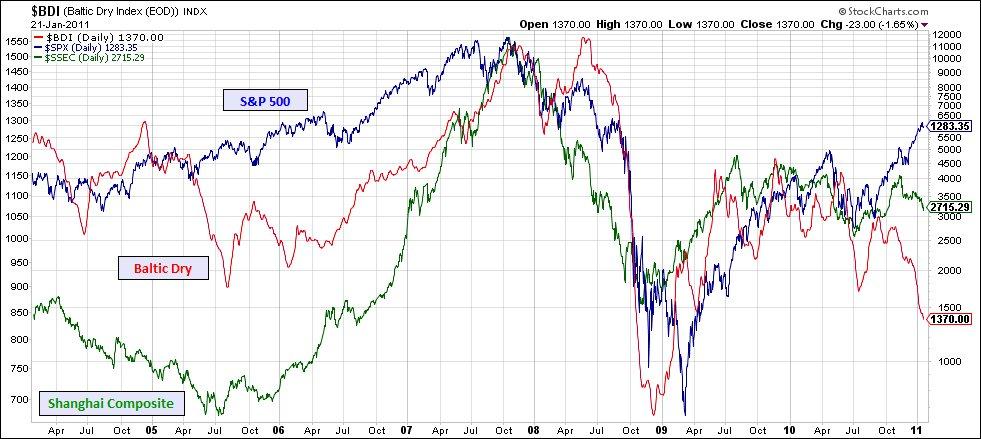 De flesta strateger är idag pretty bullish baserat på en rad indikatorer. Men vi ska inte glömma bort att den senaste tiden så har macorindikatoerer haft det allt svårare att slå förväntningarna. De finns även de indikatorerrna som pekar i negativ riktning, som ex US husmarknad, Kina M1/2, Kina CPI, CDS spreadar för PIIGS pekar på att det inte är över ännu osv… för att nämna några. En annan gammal trotjänare är Baltic Dry Index. Den har förvisso till stor del spelat ut sin rätt då shipping industrin dras med stor överkapacitet, men ändå!!!