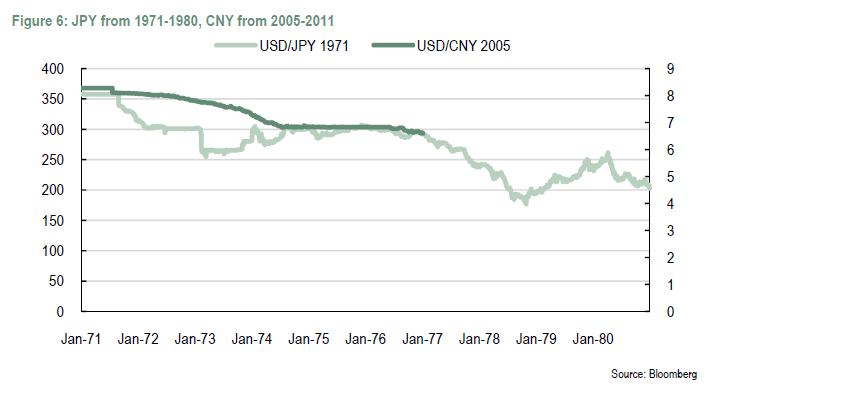 Många drar pralleller med Japanska Yenen på 70-talet (När Japan blommade) och Usa var största ”kund”, och kina idag… det verkar rimligt tycker jag! Den kinesiska valutan borde successivt stärkas under de kommande 5 åren.