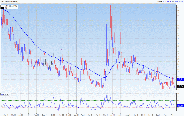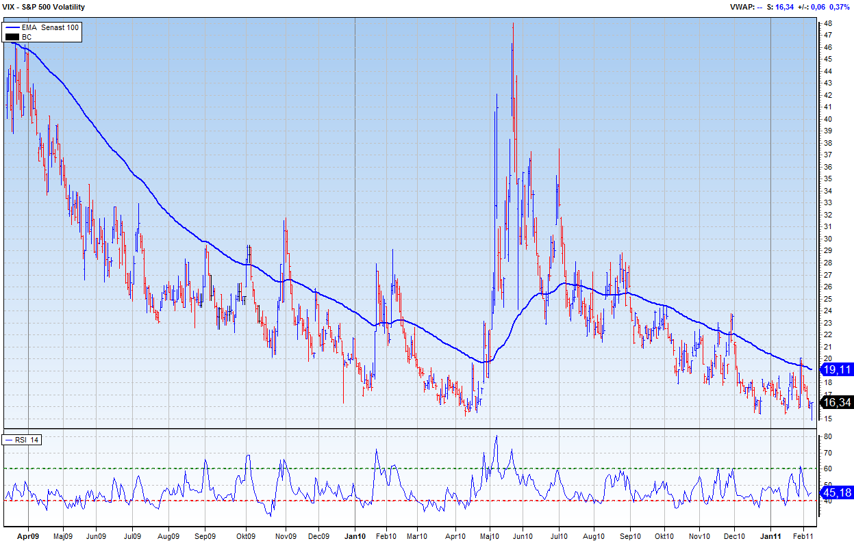 Såg precis att VIX dippade under 15…. första gången sedan sommaren 2007. Ett riktigt vår-, förlåt högkonjunktur-, tecken. Fattas bara att FED ska höja räntan också! Skämt åsido, där är vi inte riktigt ännu! Vad gäller VIX har jag länge hävdat att vi kan inte få en klassisk högkonjunktur stigande trend förrän den etablerar sig under 15. Det är liksom kvittot på att investerarna inte ser aktier som risky längre. Kortsiktigt däremot kan det tolkas som en Baisse signal!