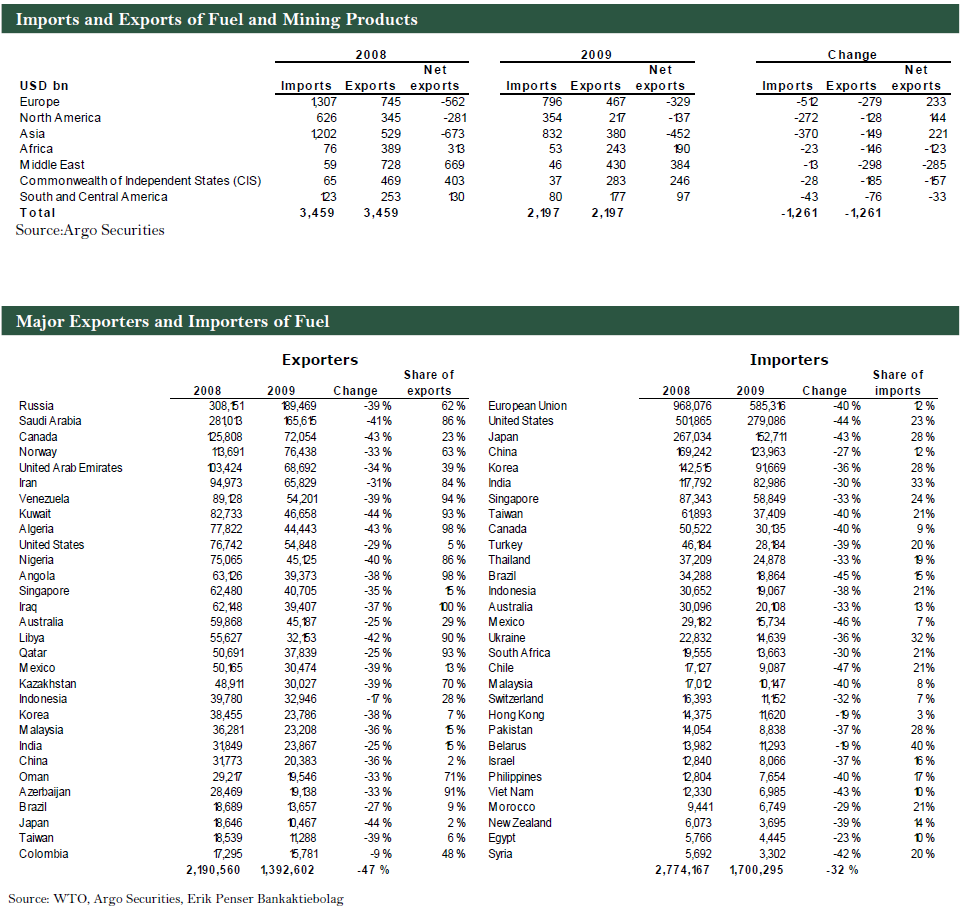 En svensk mäklare har ute en rapport idag där man säger att marknaden oroar sig för mycket över oljans negativa implikationer. De hävdar att det är ett nollsummespel mellan nettoimportörer och nettoexportörer. Ett stigande pris gynnar den sistnämnda lika mycket som det missgynnar den förstnämnda. Det låter ju rätt logiskt, nån måste tjäna mer på det högre priset, och betalaren förlorar. Men analysen tar det ett steg längre. De hävdar att under förutsättning att konjunkturen är stark, så väger energi så pass lite att vi i Europa och USA klarar hantera prisökningen. Samtidigt som exporterande tillväxtmarknader får det bättre och har möjlighet att investera, konsumera på ett sätt som i slutändan även gynnar oss i DM. Så ett stigande oljepris har smått inflatoriska effekter som får anses vara negativa, MEN de realekonomiska effekterna, inräknat spridningseffekter, är långt mycket mer positiva. Jag är skeptisk till resonemanget. Vissa hävdar att det var bla oljepriset på över 150dollar som tillsammans med subprime bubblan som knäckte konjunkturen. Det är alltså inte inflation som är största hotet, utan att oljan kan orsaka recession. Andra hävdar att konjunkturen och oljan steg hand i hand under 2003-2007. En prisuppgång är okej så länge som den är efterfrågedriven.