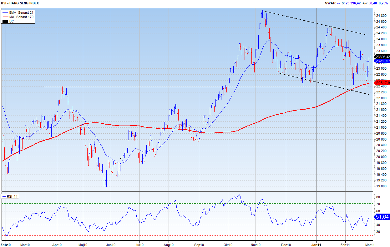 China PMI HSBC kändes svag. 51,7 mot föreg 54,5. Verkar som om marknaden fokuserar mer på inflation och åtstramning än tillväxtutsikter då Asien faktiskt var upp!