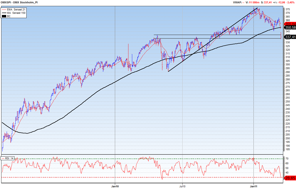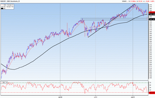 MENA kris, Japan katastrof, förnyad oro kring Irland/Grekland/Portugal samt stigande inflation i Asien med fortsatta åtstramingar som följd. Det låter ju ganska risigt ellerhur. Sälj eller?