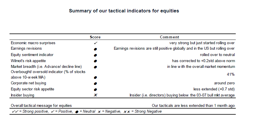 CreditSuisse är fortsatt strategiskt långsiktigt positiva till aktier, i likhet med jag själv, men ser av taktiska kortsiktiga skäl ingen anledning till att stressa in i marknaden ännu….