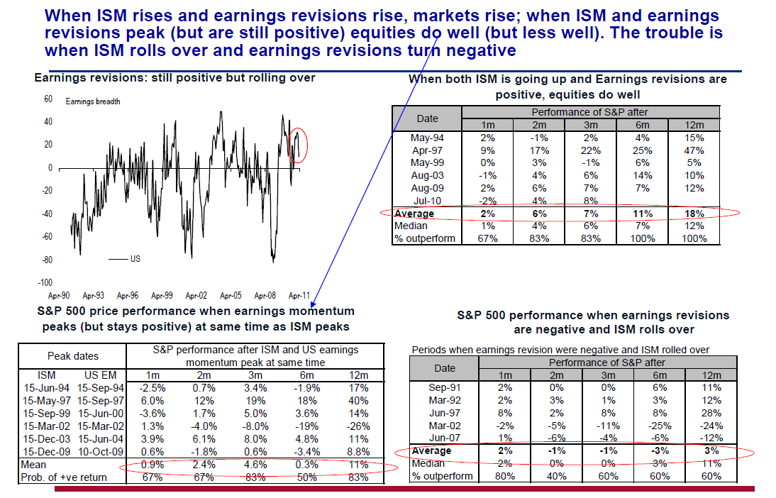 En av mina huvudskäl till varför man inte ska ha aktier kortsiktigt, är att ISM rullar över, liksom Earningsrevisions… då brukar inte marknaderna gå så bra upp till 6 månader!!!
