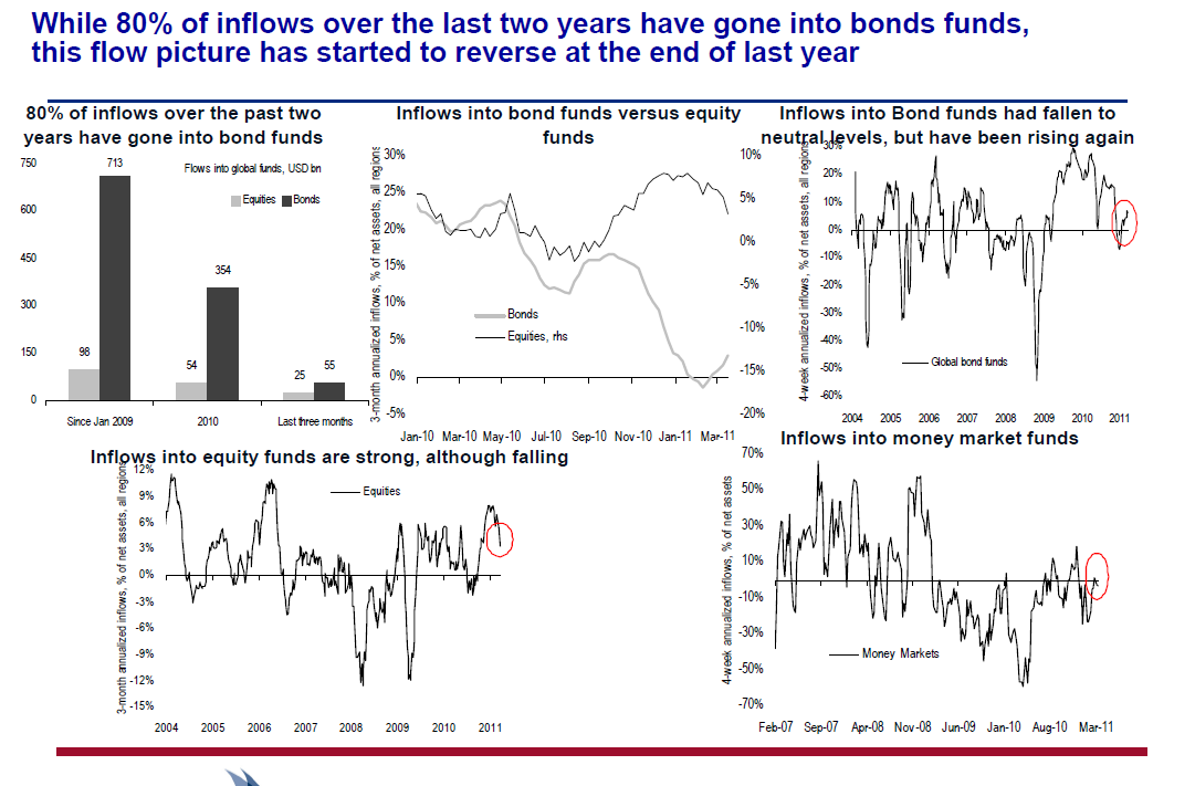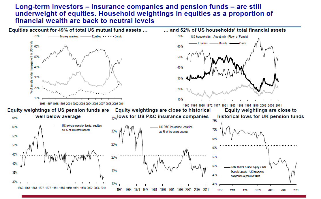 Flödesmässigt kan man tolka det på två sätt…. utflödena ur bonds och inflödena in i aktier har varit ganska rejäla… så en sättning kan trigga en del försäljningar… MEN ur ett större perspektiv är inte amerikanska fonder överviktade aktier ännu!