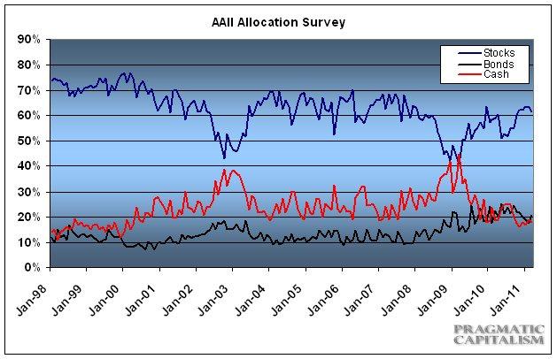 Under 2009/2010 var inflödena till Bonds (räntepapper mer +1år löptid) gigantiska. Under Q410 påbörjades the BIG ROTATION.. men fortfarande har Aktier en bra bit kvar till toppiga allokeringsnivåer.