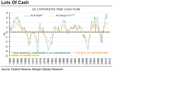 men företagen har också fått pengar över. Skuldsättning (net debt /equity) är idag låg ,och kassorna stora