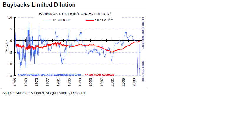 Men det handlar också om ANTAL aktier i marknaden. Ovan pratar vi om EPS, dvs vinst per aktier. Men om företag KÖPER TILLBAKS aktier minskar antalet aktier och EPS stiger. Pengar de istället kunde delat ut! Varför köper de tillbaks aktier, jo för att det i många fall är skattemässigt smartare än dela ut. Det handlar också om att börsen i DM inte så mycket är en RISKKAPITAL marknad. De stora företagen använder inte börsens riskkapital (nyemissioner) för att ta in pengar för kapacitesutbyggnad. Den här utvecklingen såg vi före 1950. I dagens tillväxtmarkander finns detta fenomen… att ett företag går till börsen för att söka riskvilligt expansionskapital. I DM är det mer IT och flörhoppningsbolag som jobbar på detta sätt!