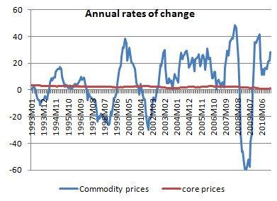 Det ska rätt mycket till för att Energi och Mat ska påverka Core inflation, och därmed räntorna, i ett längre perspektiv. Höga Energi och Mat priser får snarare än dämpande effekt på ekonomin, och kan därför snarare ses som smått deflatorisk. Core inflation drivs i mycket större utsträckning av Output Gap, som i stor utsträckning handlar om sysselsättning (dvs lönebildning) och CUR (kapacitetsutnyttjande)