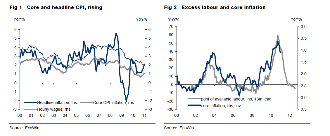 Kontentan är att högre mat och energi-priser inte nödvändigtvis behöver leda till högre inflation. I augusti förra året var alla rädda för deflation. Nu är det inflation. Om 6 månader kan det vara deflation igen?