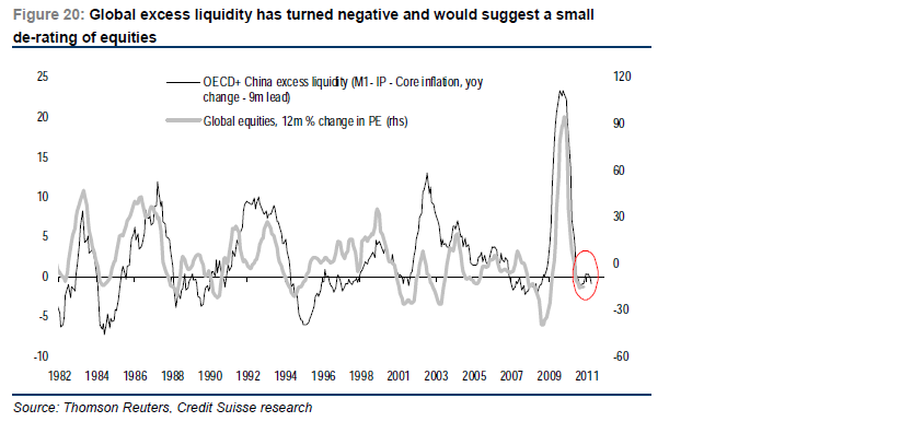 Att likviditeten sjunker globalt sett… brukar ha en negativ effekt på värderingarna! Detta är inte så konstigt… excess liquidutuy och låga räntor… var ska kulorna ta vägen… jo de pressas in i aktier vars PE först stiger utan att EPS har förändrats!