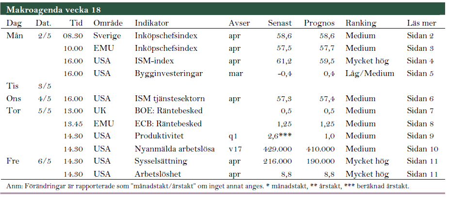 Viktig vecka makromässigt, med ISM i EMU och USA idag, ISM tjänstesektorn på Onsdag och Sysselsättningsdata på fredag.
