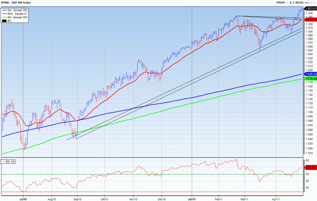 Target på OMX30 är fortsatt 1182. Detta bör sammanfalla någorlunda med SPX ca 1375…. tror på en kortsiktig topp, och sen viss korrektion i Maj. Maj har som ovana att vara ganska dålig.. ni vet ”sell in May and stay away”…. tanken är att SPX gör en kort topp kring 1375-1380, för att därefter trillar ner och stämma av vid 1315-1335, ca 3-5%, för att sen dra vidare uppåt!