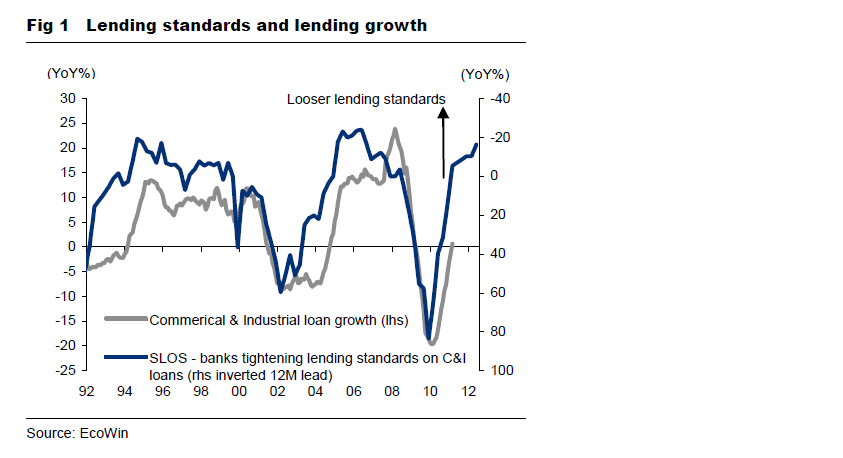 men det indikerar knappast någon krasch utan endast slutet på ”studsen” från låga nivåer där lager effekten spelade en stor roll, på bägge håll. Nu går vi in i ett lugnare tempo, lägre tillväxt baserad på ökad sysselsättning, och därmed konsumtion. Bankutlåningen kommer också att öka under andra halvan i år. Men vi ska inte tillbaks till loan growth på 20% som under glada 00-talet… utan det blir snarare 5-10% YoY som under mer nyktra 90-talet.