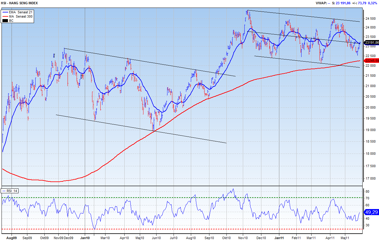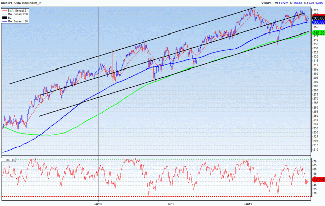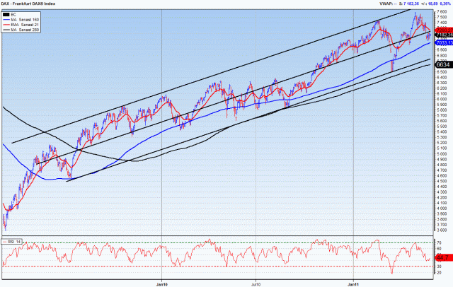 Daxen har en fin trend. den tåppte till gapet snyggt och kan mycket väl ha sett botten. Alternativt ska vi ner 4-5% i en sista runda! ECB agerande på räntesidan och Grekland default spelar en stor roll liksom IFO (som håller upp förvånansvärt väl)