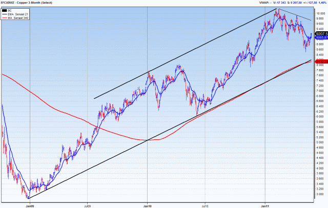även kopparn spelar in… särskilt på Kina caset. Studs i fallande trend, fast stigande primär trend?