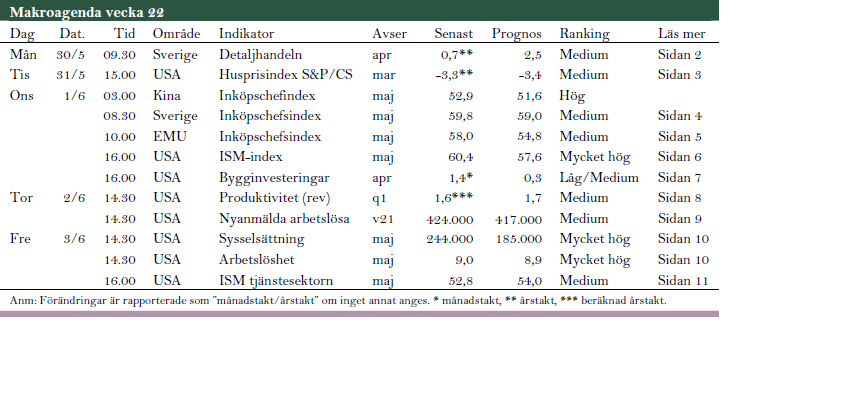 1, US core inflation, amerikanska två-åringen samt sysselsättning/consumer confidence