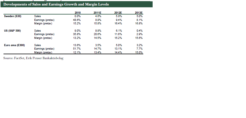 Estimanten ligger troligtvis snäppet för högt med tanke på China PMI kring 51 och ISM ska ner mot 55 eller lägre.. så kommer top line revideras under 2H11, och därmed Earnings…. och på toppen av detta lite högre COGS. Men likförbaskat är vinsterna tillräckligt bra!