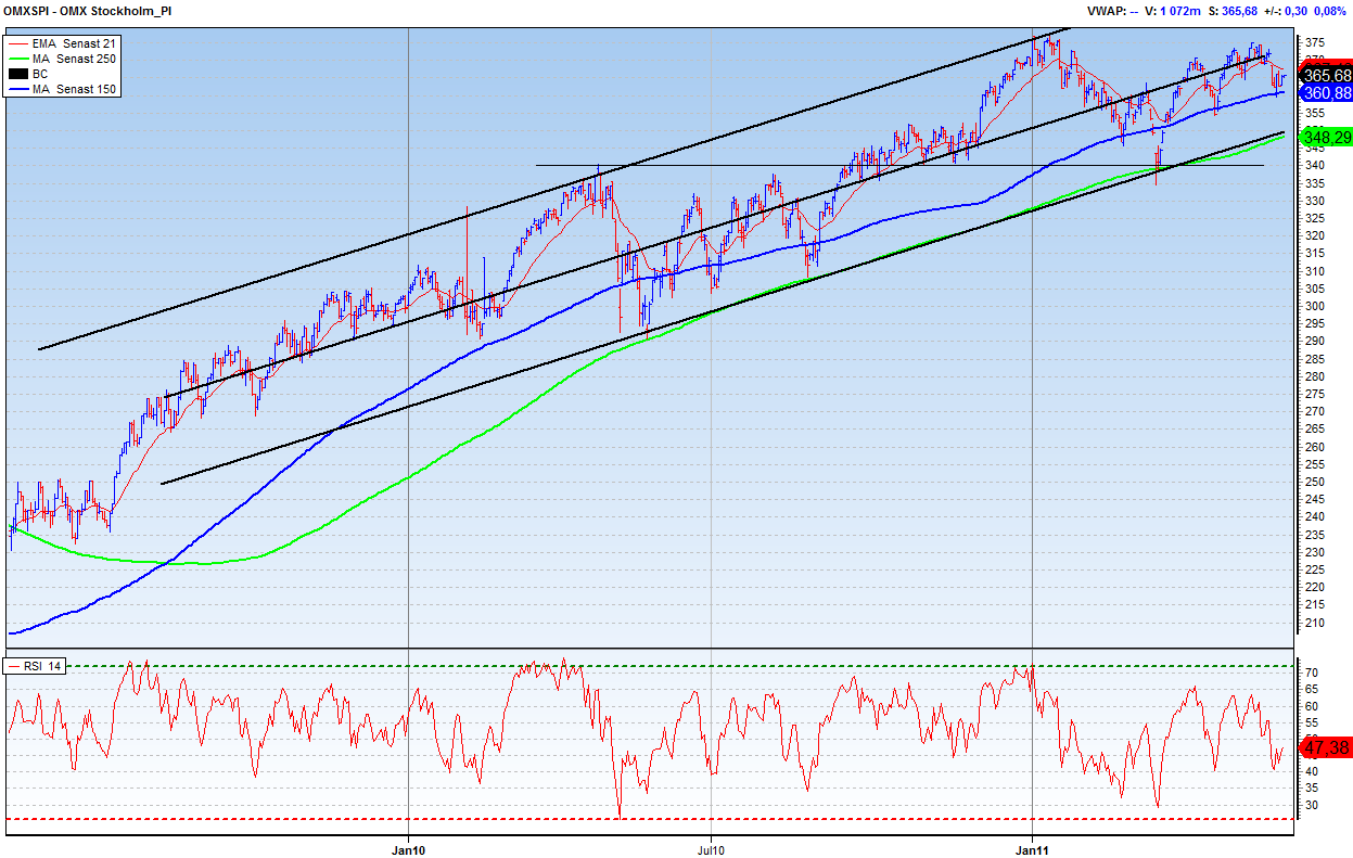 A, TekniskAnalys. Trenden är i mångt och mycket stigande.