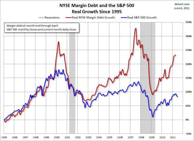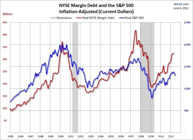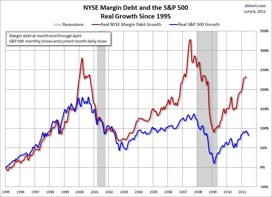 QE2. Det har inneburit att FED köpt statsobligationer. Det har ökat bankernas likviditet, men det har inte triggat någon traditinell ssssutlåning i USA. Belåning på aktier, dvs du köper en aktie för egna pengar, och använder den som säkerhet för att köpa fler aktier, har ökat dramatiskt. Spelar det nån roll för börsen. Det kan du fethaja!