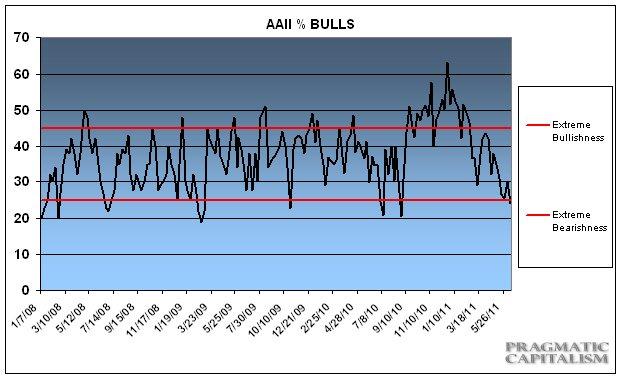 Känner du dig ”ahead of the curve” för att du är bearish? Gör inte det… konsensus är rätt bearish nu. Måste lägga till att nedan har varit en ganska usel market timer på sistone, så det är inget som gör att du ska springa benen av sig för att köpa… mer att ha i bakhuvudet att konsensus inte är bullish längre iallafall!
