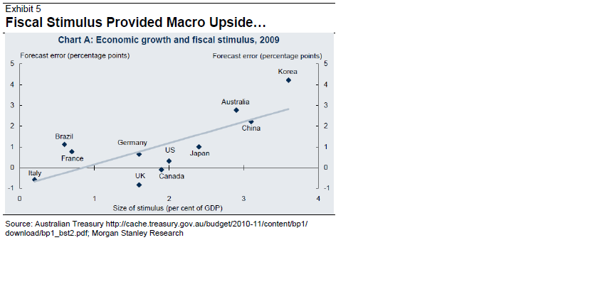 På lång sikt är det betydlilgt viktigare alltså att EM går bra. På kort sikt handlar det mer om statlig stimulus. Nedan chart visar korrelationen mellan hur statlig stimulus gör att makrodatan blir bättre än väntat. Dvs mycket stimulus ger makro surprises, och tvärtom!