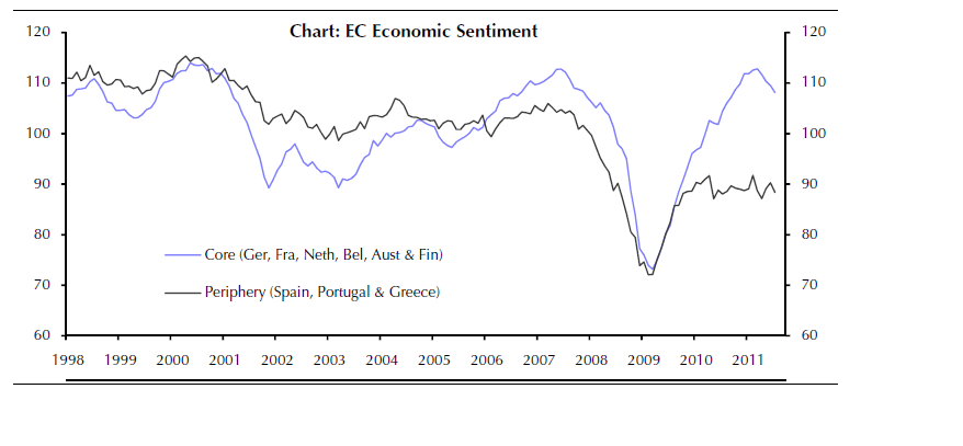 Jag har sagt det tidigare och säger det igen. En lösning för eurozonen skulle vara om skrotade alla lokala ”riksgälder”, dvs dem som emiterar växlar och oblilgationer, i Italien, Portugal, Tyskland osv… och haft EN Euro Treasury som emiterade allt, och hanterade hela Eurozonens statsskuld. Jag vet inte om det finns en massa praktiska svårigheter, det finns det säkert, men genomsnittsfinansiering skulle troligtvis bli lägre och det hade varit positivt för valutan. Idag ligger den Tyska bunds på 2,30% och Italienska på 5,10%. Visst det blir dyrare för Tyskarna. Men det blir det ändå till slut då deras banker sitter på en massa Italienska bonds som de måste ta hand om förr eller senare. Problemet är väl politiskt populistiskt precis som vanligt. Det blir också politiskt jobbigt i framtiden när ett land har hög statsskuld och ett annat har en låg, eller när ett land kör budgetunderskott och ett annat överskott… vilket skulle tvinga fram att eurozonen skulle ha en gemensam budget. Frågan är om Europa är redo för det? Troligtvis inte!