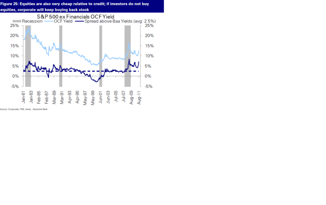 faktum är att cash flow yilden på SPX i förhållnade till Corp bond yield är på nivåer som du får gå tillbaks till tidigt -80 tal för att hitta…. historiska snittet ligger på 2,5%